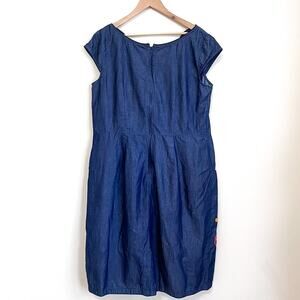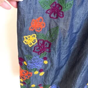 Eshakti Floral Embroidered Boho Sheath Dress Size XL Chambray Denim Cotton India