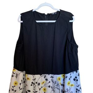 Eshakti Plus Size 28W Colorblock Sunflower Print Sleeveless Fit & Flare Dress