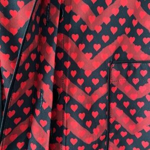 Eshakti Size 1x Chevron Red Heart Print Crepe Ruffle Black Trim Shirt