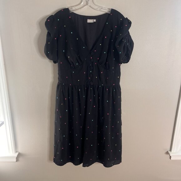 Eshakti Size 20W Black Puff Sleeve Rockabilly Polka Dot A-line Dress