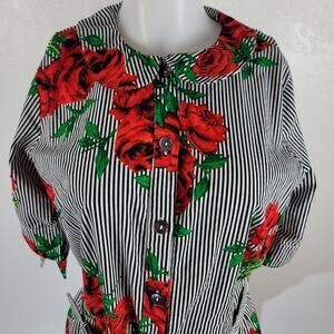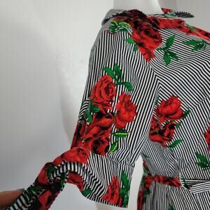 Eshakti White/Black Stripped Floral Beaded Business Vacation Dress M