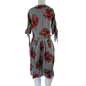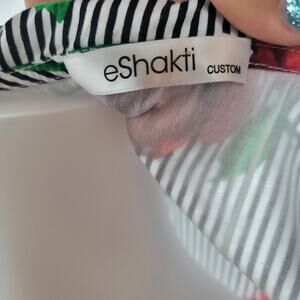 Eshakti White/Black Stripped Floral Beaded Business Vacation Dress M Stunning Beautiful. In Excellent Condition. Approximate Measurements (flat) Length 40" Chest 39" Sleeve 15" Bin 5234