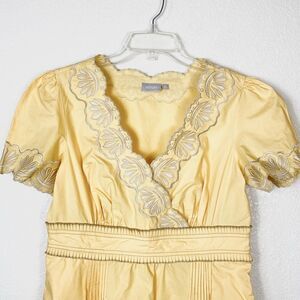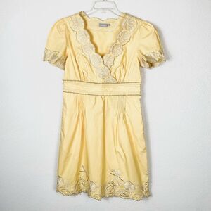 Eshakti Yellow & Grey Floral Embroidered Surplice Dress