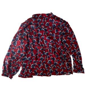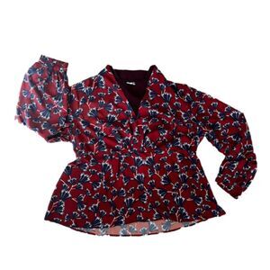 Eshakti v neck blouse, elastic waist ,button sleeve cuff , lined , floral fan print , maroon color