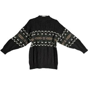 Esk Valley British Wool Vintage Mock Neck Sweater Sz S Oversized Fair Isle Silk