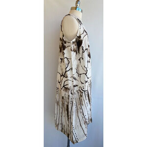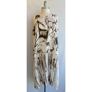 Eskandar 1 US 10 12 MAGNOLIA Floral Print Brown Tan Oversized Linen 42"L Dress