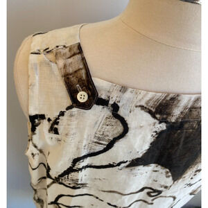 This beautiful Eskandar dress is a must-have for any fashion-forward woman. The Magnolia print in shades of brown and tan make it perfect for any season, while the sleeveless design and midi length add a touch of sophistication. The excellent condition linen material is of the highest quality and provides comfort throughout the day. The dress features an oversized fit and a cute button strap, making it easy to wear and style. The Eskandar dress perfect for any occasion, whether you're going to work or to a party. Add this dress to your collection today.