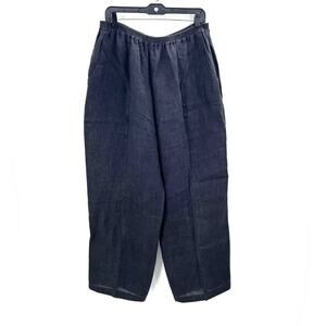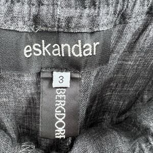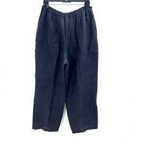 Eskandar Black 100% Linen Lagenlook Pull On Wide Leg Trouser Pants Size 3