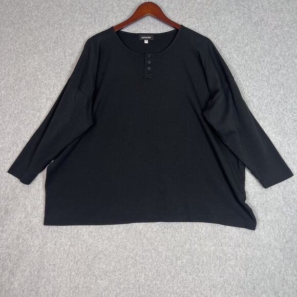 Eskandar Black Henley Long Sleeve 100% Pima Cotton Boxy Shirt One Size