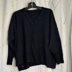Eskandar Black Scottish Cashmere V-Neck Sweater – One Size