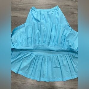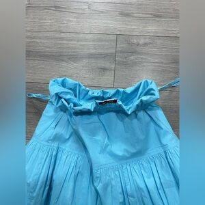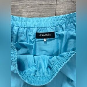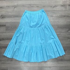 Eskandar Blue Cotton Tiered Maxi Skirt with Pocket size 0