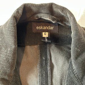 Gorgeous long black corduroy coat by ESKANDAR for Neiman Marcus. In excellent preowned condition. No stains, holes, flaws of any kind. Very minimal wear. Beautiful fit. Eskandar runs large in all pieces. Has a lovely oversized fit. A size 0 is equivalent to a M oversize fit. Could fit anywhere from size 8 to size 18.