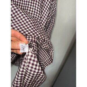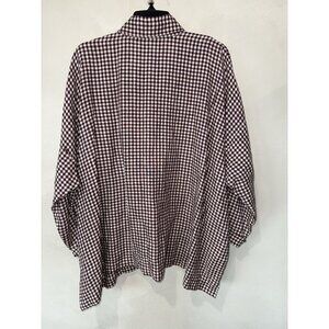 Eskandar Linen Boxy Shirt Women 0 Button Up Blouse Top Plaid Purple Cream Check