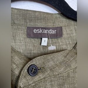 Eskandar Linen Wide A-line Collarless Shirt - Very Long With Slits Size 1