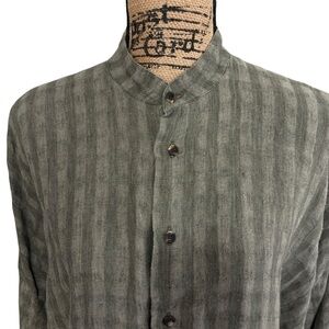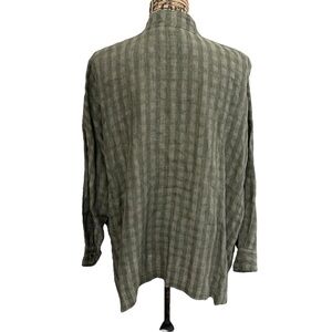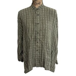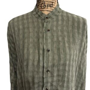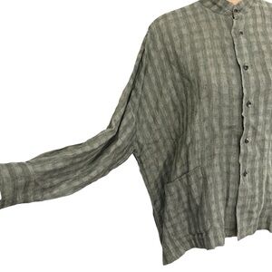 Eskandar Mandarin Collar Button Down Shirt Jacket Tunic Green Linen Size 0/6-8