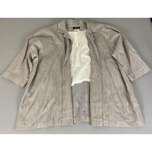 Eskandar Neiman Marcus Jacket Size 2 US 14-16 Linen Silk Wool Brown Striped Open