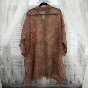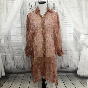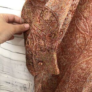 Size 0 Red Orange Silk Paisley Button Boxy Shirt Tunic Top