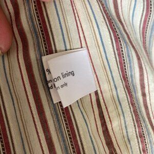 Striped cotton lining (cream, red, blue, brown) on the interior, visible when cuffs are rolled up (shown in photos).