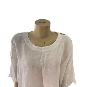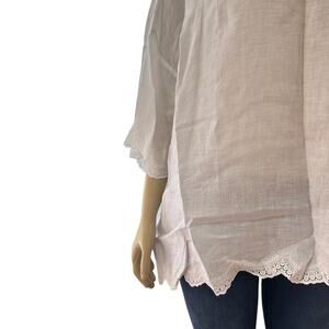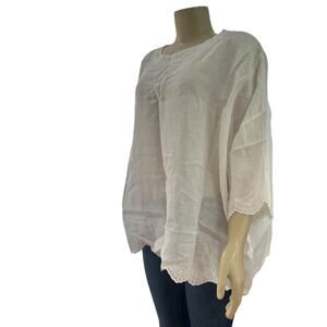 Eskandar Womens Linen Eyelet Trim Top One Size White Minimalist Lagenlook Boho
