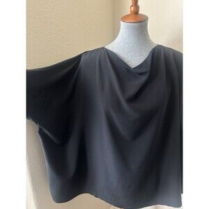 Eskandar Women's Size 1 (10/12) Black 100% Silk Drape Cowl Neck Blouse