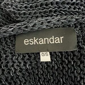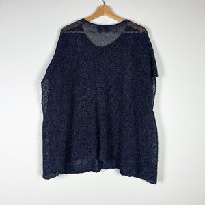 Eskandar Wool Blend Fishnet Crochet Stretch Boxy Oversize Pullover Sweater Blue
