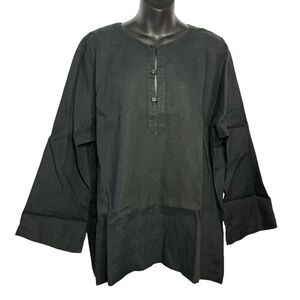 Eskandar charcoal linen lagenlook wide sleeve trapeze tunic top oversized size 1