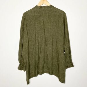 Eskandar green linen lagenlook pocket boxy high low button tunic oversized