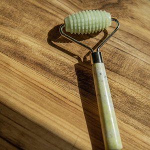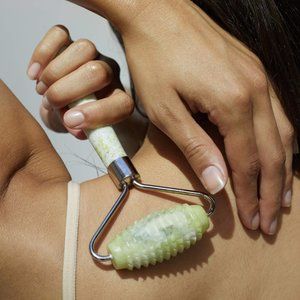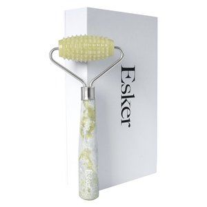 Esker’s Allover Roller is made up of a textured Xiuyan Jade roller and polished Xiuyan Jade handle to provide a deep and gentle self massage for the entire body. At 7” long and 3.25” wide Allover Roller’s texture is designed to break up fascia in the top layers of the skin to reduce tension and puffiness. This unique tool also encourages a deeper penetration of Esker’s Body Oils. With continued use, the Allover Roller reveals a renewed skin that is firm, soft, and glowing.