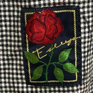 Embroidered rose patch with “Esleep” signature at hem