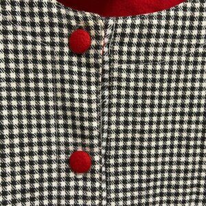 This Esleep Boxer women's top in size XL blends classic charm with cozy comfort. Designed in a timeless black and white gingham check, it features bold red accents that pop — including a bright chest pocket, matching red cuffs, and a fully lined red interior for added warmth. The front showcases soft fabric-covered buttons with loop closures, while a striking embroidered rose patch near the hem adds a signature touch of flair. Ideal for lounging, casual layering, or running errands in unique vintage-inspired style. Crafted from 100% cotton, it offers breathable softness perfect for year-round wear. A standout piece for fans of statement sleepwear or retro casual looks.