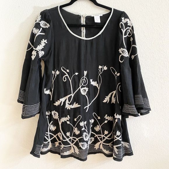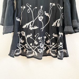 Esley Blouse Size M Embroidered Detail White Black Flowy Button Back Top Blouse