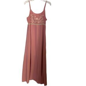 Esley Embroidered Rayon Pink Strappy Large Women's Spring Maxi Dress NWOT