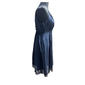 Esley Silk Blue Pleated Halter Midi Sundress Size Medium
