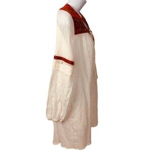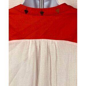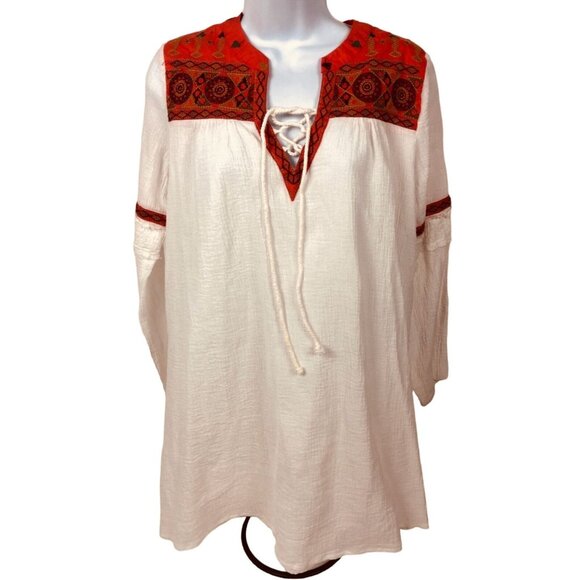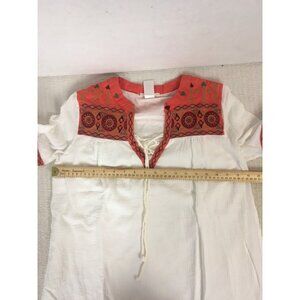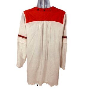 Esley Top Women Size S White Orange Embroidered Geometric V neck Long Sleeves