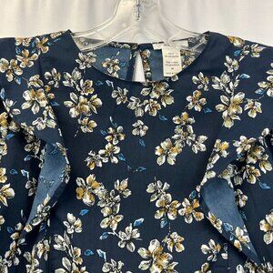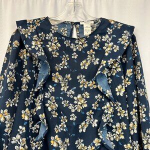 Esley Womens Multicolor Floral Ruffle Long Sleeve Blouse Top Size Medium
