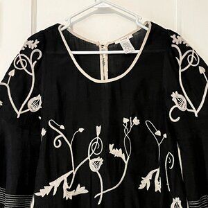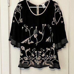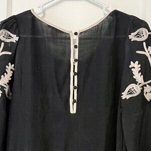 Esley anthropologie blouse size small floral embroidered gauzy flutter sleeve