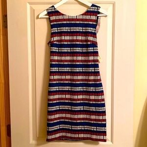 Esley backless red white blue stripe shift dress with back ruffle size small