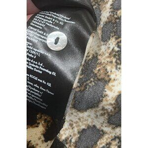 Esmara Heidi Klum mini dress Women’s Leopard Print Cuff Sleeves brow Sz 6 Heidi. Extra button. Button sleeves and button closure. You could dress this up with a black belt and some black boots and you would look absolutely stunning. See pictures for approximate measurements The size tag says its a EUR 38 Please feel free to look up the conversion chart on this. I did and got a size 6.