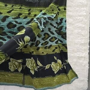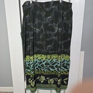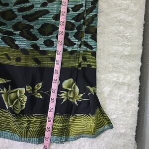 Good Condition, Esmerelda Fashions, Art to Wear - Animal Print Rose Maxi Skirt, Black Blue Green, 2 XL