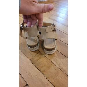 Espadrille Flatform Sandals Ankle Strap Faux Suede Beige Casual Shoes Girls 13