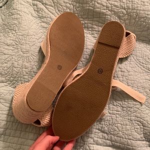 Like new! The shoes look just as pictured online! (My lighting is terrible.) Only wore these around the house for one day—my baby shower. They are perfect soludos dupes and i personally find them more comfortable and a prettier shade of neutral white. Any questions, just ask ✨