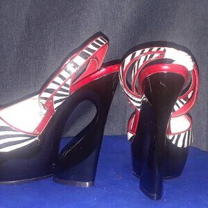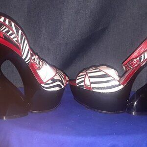 OPEN TOE ZEBRA PRINT Espadrilles OUTLINED BLACK PATENT LEATHER
