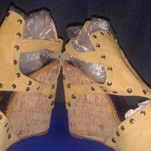 WEDGE Espadrilles MUSTARD SUEDE / Styrofoam WEDGE HEEL WITH STUDDED SIDE BUCKLE