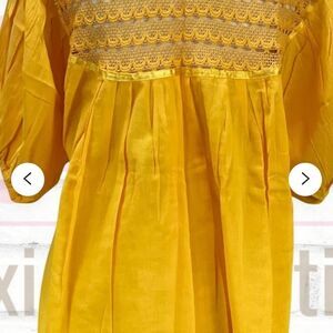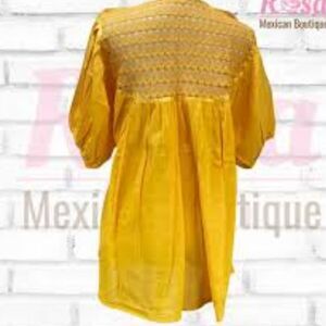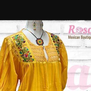 Espanola StyleMexican HandmadeEmbroidered Crochet Yellow OneSize Shortslv Blouse.