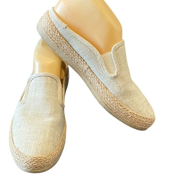 Espirit Neema Espadrille Slip On Mules Sz 6.5 Beige Canvas Linen-Look #36S