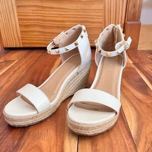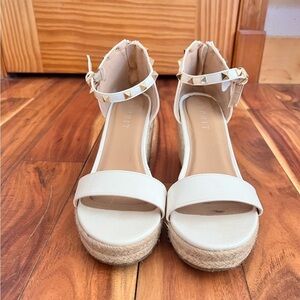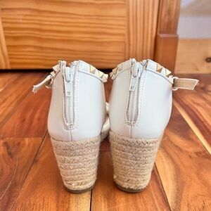 Espirt 8.5 White Faux Leather Studded Wedges Espadrille Neutral Minimalist