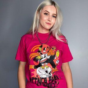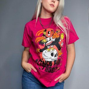 Graphic designed by artist Sentrock on a hot pink cotton tee! Unisex size M. Only worn for photos. Limited edition merch from the Stadium Goods Cinco Para Todos event in Chicago!