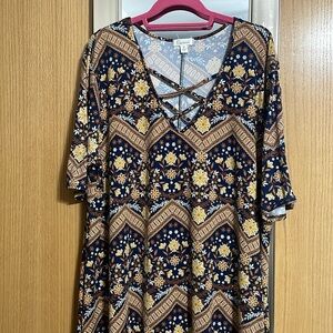 EUC Excellent used condition. Espresso brand. Size 3X. Criss cross front. Floral, Aztec print tunic.
