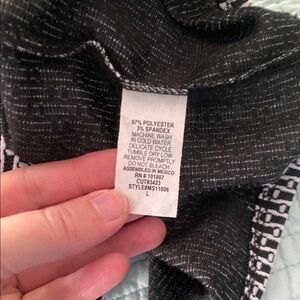 This chic pencil skirt by Espresso is perfect for work or cocktail events, featuring a classic black and white color scheme. Its knee-length design and subtle slit offer a modern twist on a timeless silhouette, ensuring a sleek and polished appearance. Measures 15-17.5” waist and 23” waist to hem.
