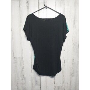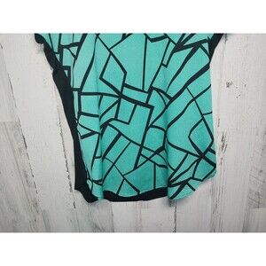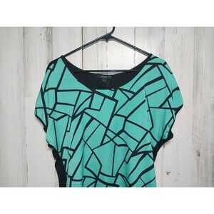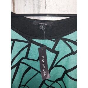 Espresso Blue Black Geometric Pattern Short Sleeve Blouse Large